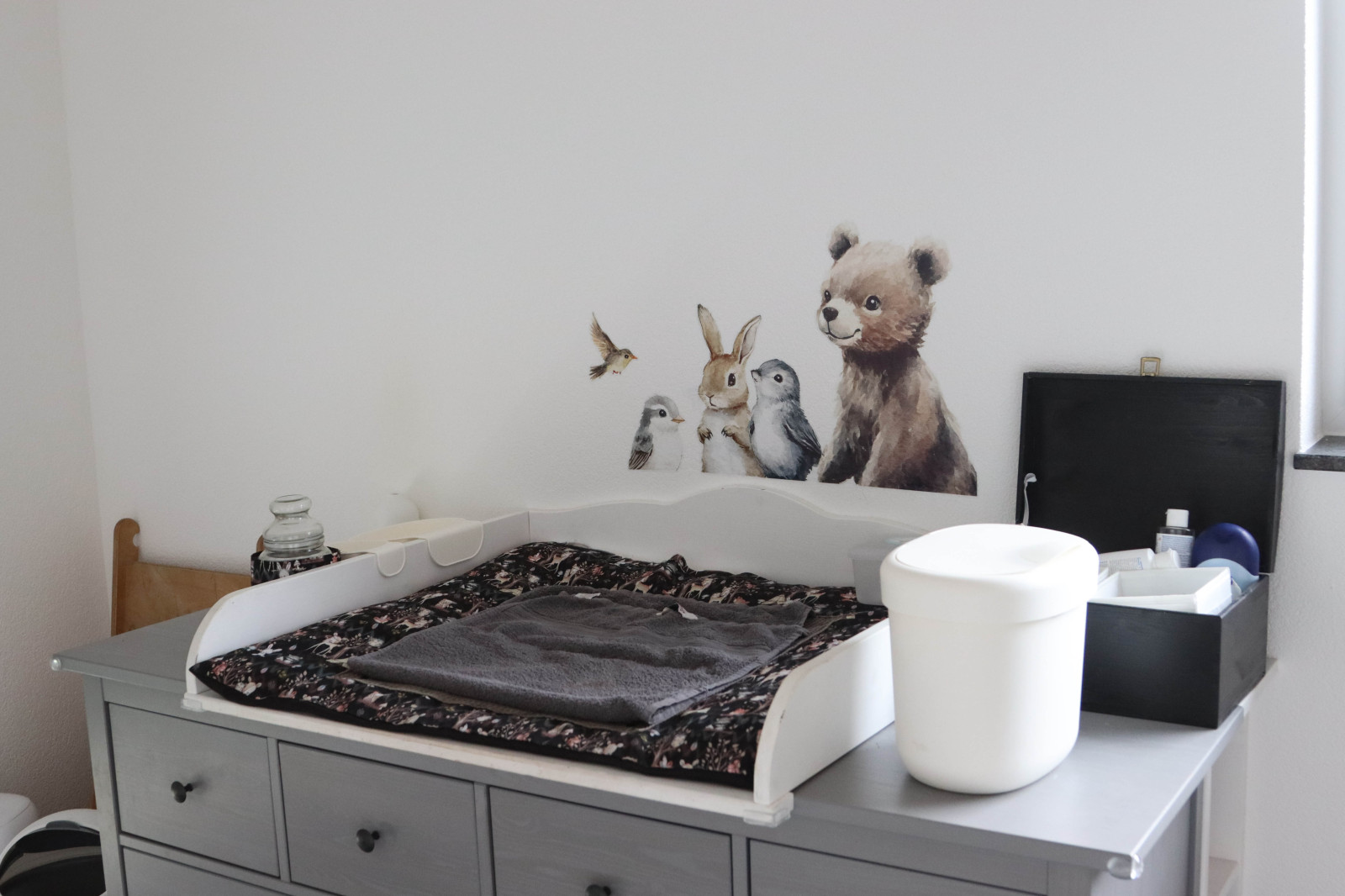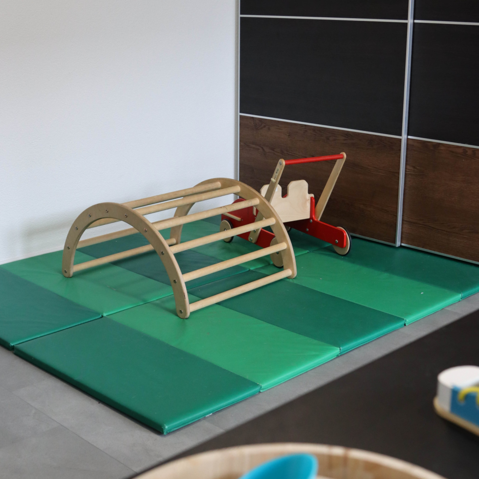 In einem unserer Räume befindet sich unser Wickeltisch, dort stehen den Kindern auch Eigentums Fächer zu Verfügung.